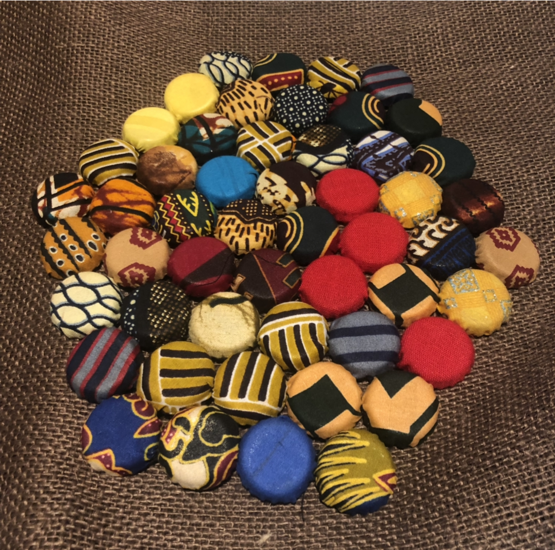 This patchwork trivet will look fabulous on your kitchen counter! Handcrafted using bottlecaps covered in fabric to create a patchwork look. Approximately 8" circumference.