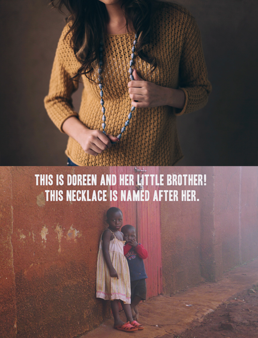 Each piece of jewelry is handmade, start to finish, by Ugandan women. Because of the unique nature of the creation process, no two pieces will ever be exactly alike. Isn't that amazing? Though the pieces may share similarities in color and design, each has its own story and characteristics that make it 100% unique... just like the extraordinary woman who crafted it.