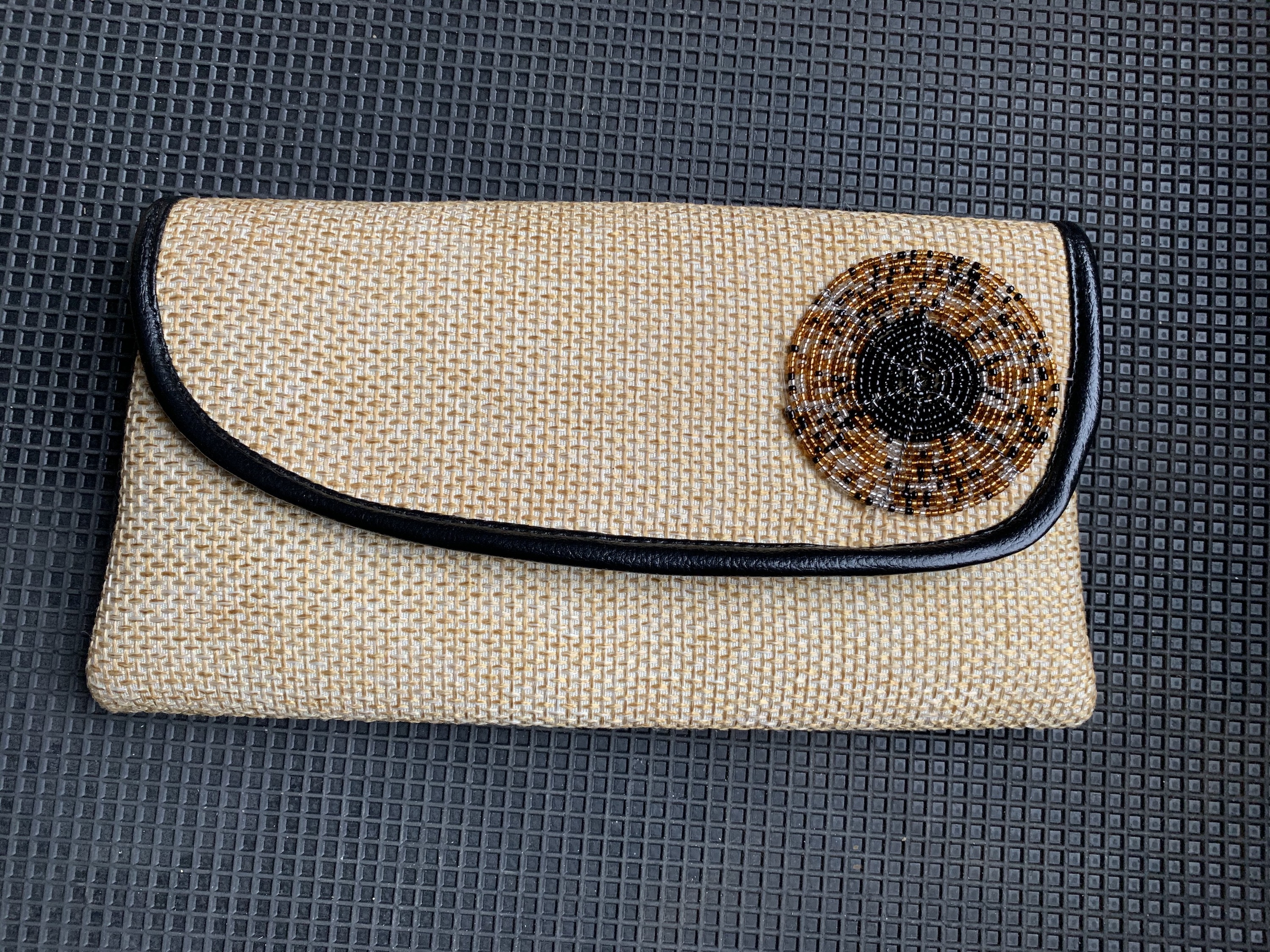This gorgeous clutch features a foldover flap with an intricate design made of tiny sead beads. A best seller at our live sales, this one always sells out! Approximate size 5"x10"