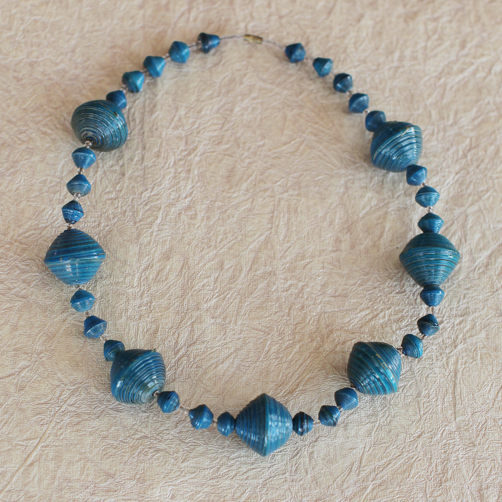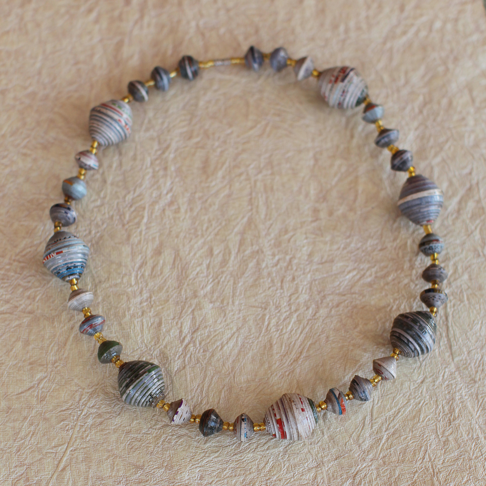 Every bead is handcrafted from 100% recycled paper. Each bead is carefully rolled creating it's unique and distinctive design. Because each item is uniquely handmade and crafted, each photo is a close example but not exact replica.