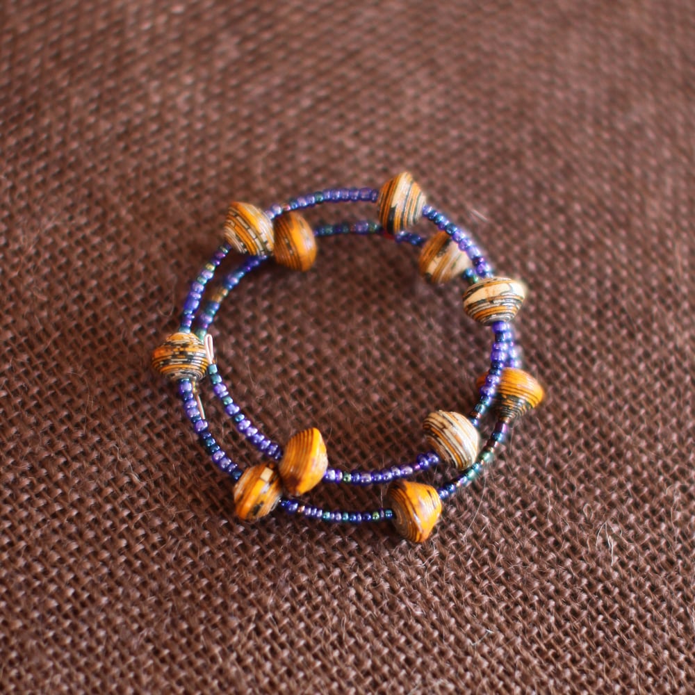 Every bead is handcrafted from 100% recycled paper. Each bead is carefully rolled creating it's unique and distinctive design. Because each item is uniquely handmade and crafted, each photo is a close example but not exact replica.