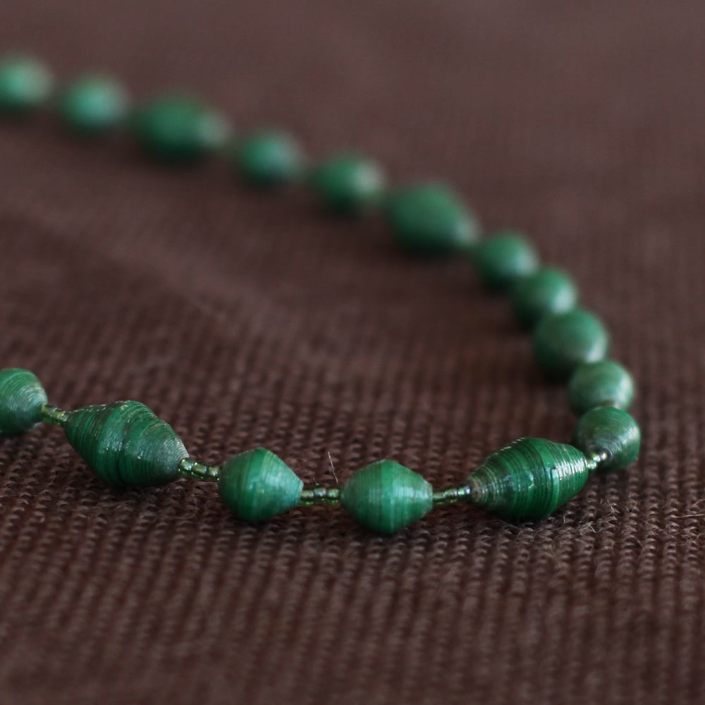 Every bead is handcrafted from 100% recycled paper. Each bead is carefully rolled creating it's unique and distinctive design. Because each item is uniquely handmade and crafted, each photo is a close example but not exact replica.